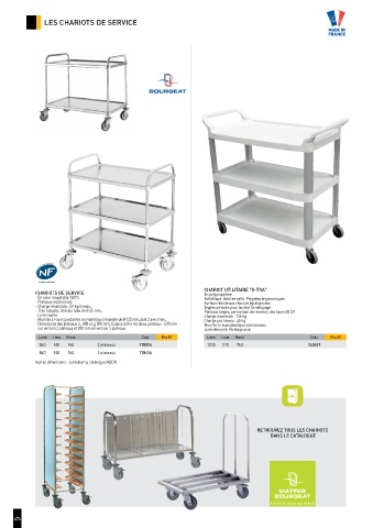 - Très robuste, châssis tube de Ø 25 mm. Plateaux larges, permettant de recevoir, des bacs GN 2/1.