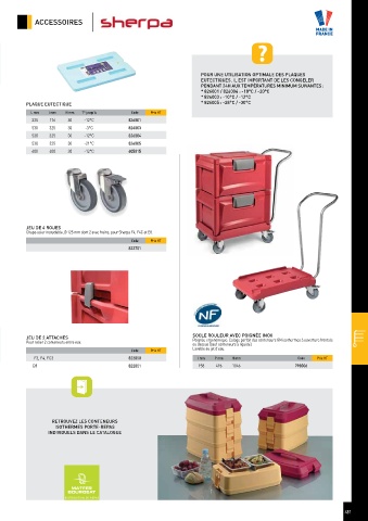 JEU DE 2 ATTACHES Poignée ergonomique. Calage parfait des conteneurs GN isothermes à ouverture frontale
