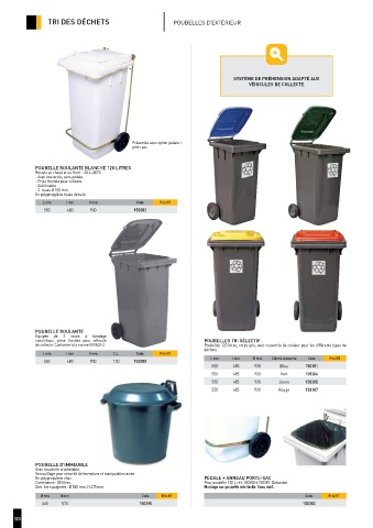de collecte. Conforme à la norme EN 840-2. Poubelles 120 litres, corps gris, avec couvercle de couleur pour les différents types de