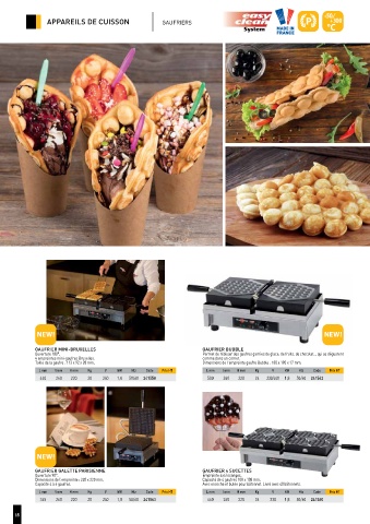 Ouverture 180°. Permet de réaliser des gaufres garnies de glace, de fruits, de chocolat... qui se dégustent