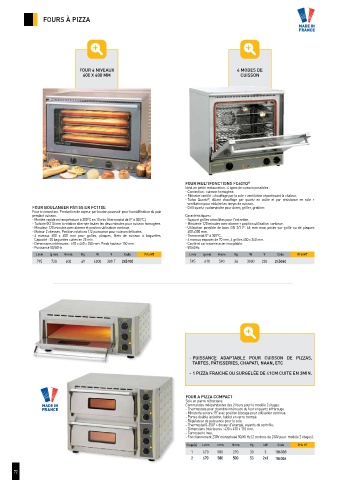 Capacité : 20 baguettes cuites en 25 min. - 4 niveaux espacés de 70 mm, 4 grilles 450 x 340 mm.