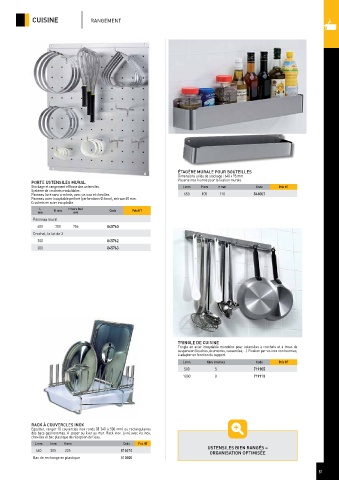 Stockage et rangement efficace des ustensiles. L mm P mm H mm Code Prix HT
