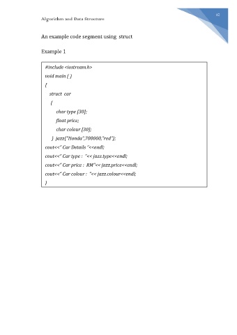 An example code segment using struct