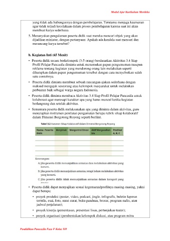 • Peserta didik diminta membaca Aktivitas 3.4 Siap Profil Pelajar Pancasila untuk