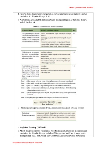e. Guru menyiapkan rubrik penilaian unjuk kinerja sebagai siap berlatih, melalui