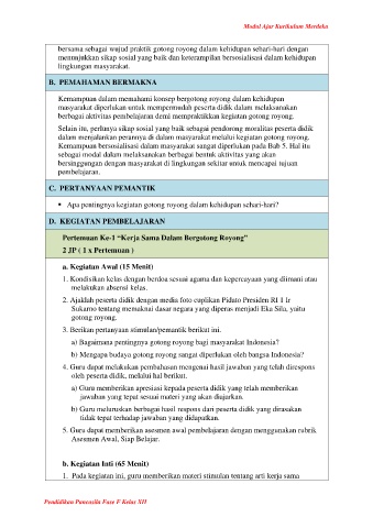 berbagai aktivitas pembelajaran demi mempraktikkan kegiatan gotong royong.