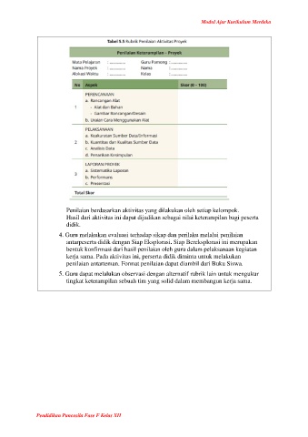 penilaian antarteman. Format penilaian dapat diambil dari Buku Siswa.