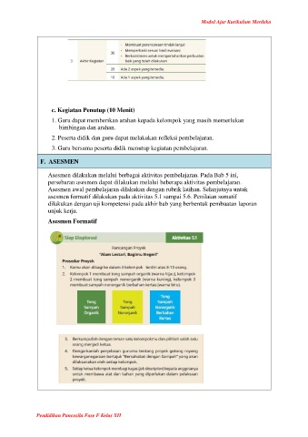 Asesmen dilakukan melalui berbagai aktivitas pembelajaran. Pada Bab 5 ini,