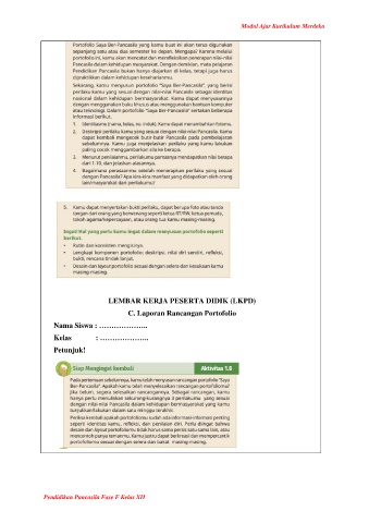 Modul Ajar Kurikulum Merdeka LEMBAR KERJA PESERTA DIDIK (LKPD) C. Laporan Rancangan Portofolio Nama Siswa : ……………….. Kelas : ……………….. Petunjuk! Pendidikan Pancasila Fase F Kelas XII