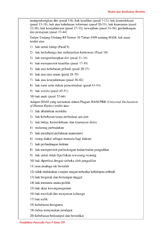 mengembangkan diri (pasal 3-6), hak keadilan (pasal 7-12), hak kemerdekaan