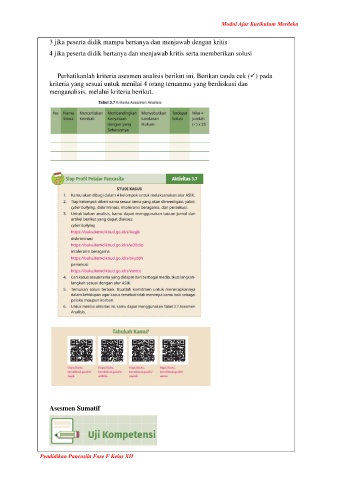 Perhatikanlah kriteria asesmen analisis berikut ini. Berikan tanda cek (✓) pada