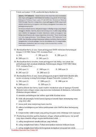 13. Berdasarkan berita di atas, kasus pelanggaran HAM intoleransi bertentangan