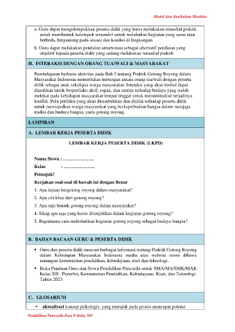 Pembelajaran berbasis aktivitas pada Bab 5 tentang Praktik Gotong Royong dalam