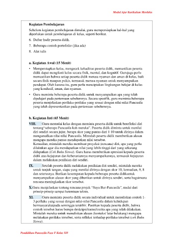 VIII. Guru memulai kelas dengan meminta peserta didik untuk berefleksi diri