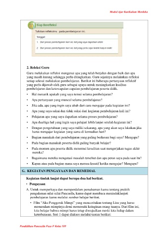 Guru melakukan refleksi mengenai apa yang telah berjalan dengan baik dan apa
