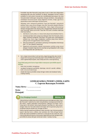 Modul Ajar Kurikulum Merdeka LEMBAR KERJA PESERTA DIDIK (LKPD) C. Laporan Rancangan Portofolio Nama Siswa : ……………….. Kelas : ……………….. Petunjuk! Pendidikan Pancasila Fase F Kelas XII