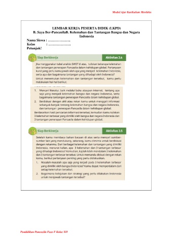 Modul Ajar Kurikulum Merdeka LEMBAR KERJA PESERTA DIDIK (LKPD) B. Saya Ber-PancasilaB. Kelemahan dan Tantangan Bangsa dan Negara Indonesia Nama Siswa : ……………….. Kelas : ……………….. Petunjuk! Pendidikan Pancasila Fase F Kelas XII