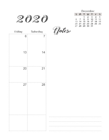 December S M T W T F S 2020 13 14 15 16 17 18 19 1 5 4 3 2 9 10 11 12 8 7 6 20 21 22 23 24 25 26 27 28 29 30 31 Notes Friday Saturday