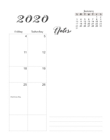 January S M T W T F S 2020 10 11 12 13 14 15 16 1 2 5 9 6 7 8 3 4 17 18 19 20 21 22 23 24 25 26 27 28 29 30 31 Notes Friday Saturday
