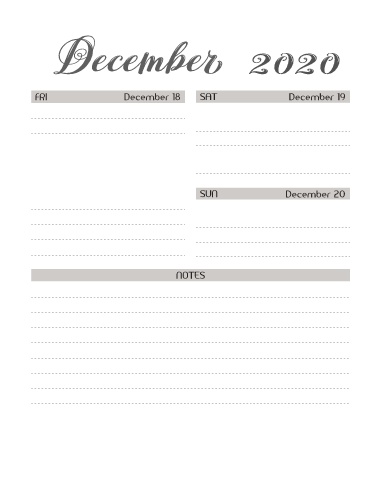 December 2020 FRI December 18 SAT December 19 SUN December 20 NOTES