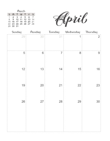 March S M T W T F S 1 2 3 4 5 6 7 April 8 9 10 11 12 13 14 15 16 17 18 19 20 21 22 23 24 25 26 27 28 29 30 31 Sunday Monday Tuesday Wednesday Thursday