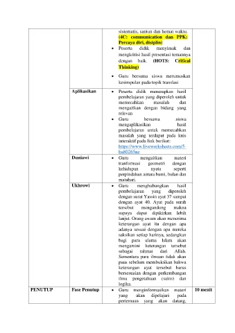 Aplikasikan Peserta didik menerapkan hasil