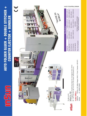 Model No. Max. Sheet size Min. Sheet Size M/C Dimension Max. Belt Speed Max. Stitching Speed