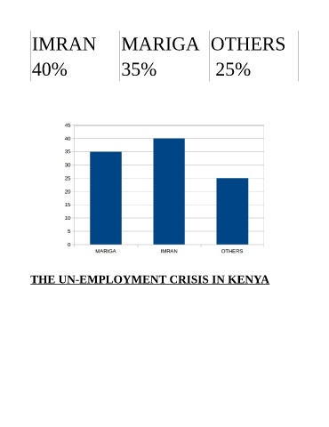IMRAN MARIGA OTHERS 40% 35% 25% n THE UN-EMPLOYMENT CRISIS IN KENYA