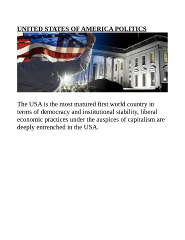 UNITED STATES OF AMERICA POLITICS The USA is the most matured first world country in terms of democracy and institutional stability, liberal economic practices under the auspices of capitalism are deeply entrenched in the USA.