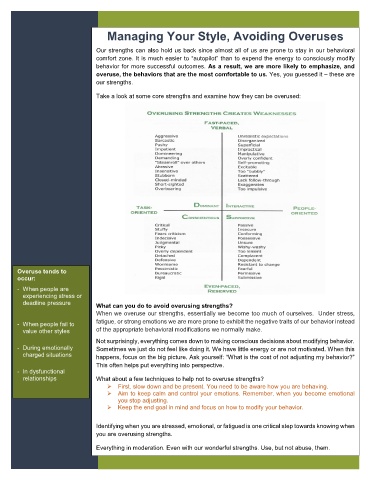 When we overuse our strengths, essentially we become too much of ourselves. Under stress,