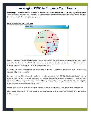 comes together to experience DiSC, a team map can be created to help team members – and the team leader –