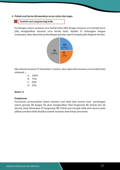 Perumusan permasalahan dalam stimulus soal tidak jelas karena hasil persilangan