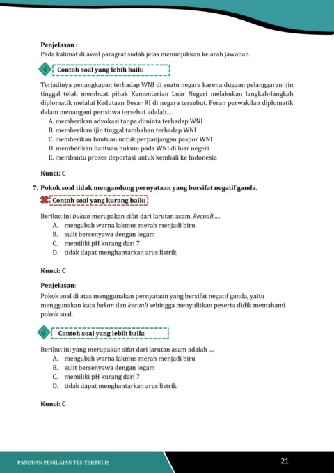 7. Pokok soal tidak mengandung pernyataan yang bersifat negatif ganda.