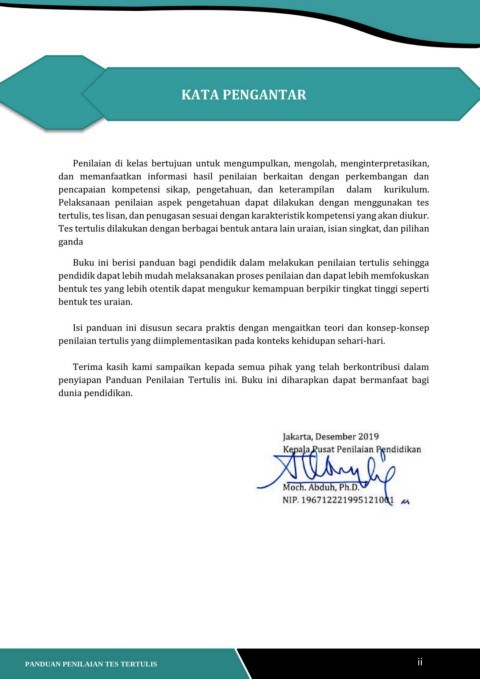 penyiapan Panduan Penilaian Tertulis ini. Buku ini diharapkan dapat bermanfaat bagi