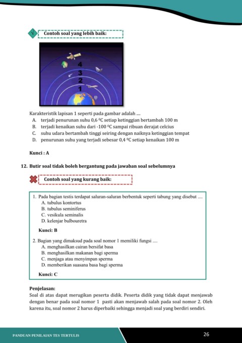 12. Butir soal tidak boleh bergantung pada jawaban soal sebelumnya
