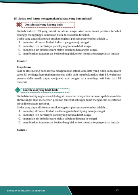 15. Setiap soal harus menggunakan bahasa yang komunikatif.