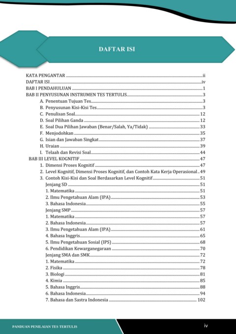 PANDUAN PENILAIAN TES TERTULIS iv