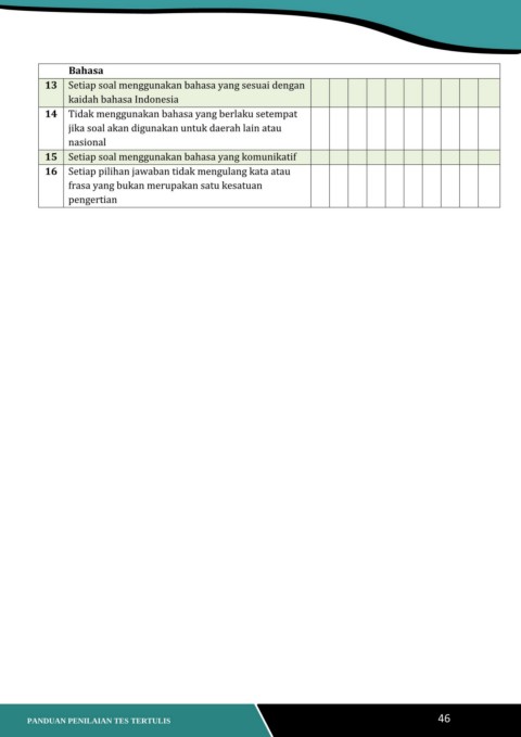 13 Setiap soal menggunakan bahasa yang sesuai dengan