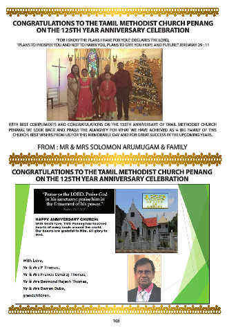 WITH BEST COMPLIMENTS AND CONGRATULATIONS ON THE 125TH ANNIVERSARY OF TAMIL METHODIST CHURCH