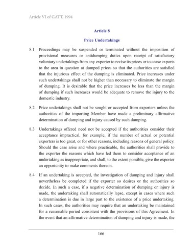 8.2 Price undertakings shall not be sought or accepted from exporters unless the