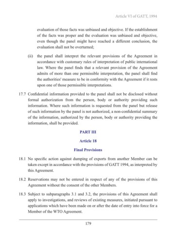 18.1 No specific action against dumping of exports from another Member can be