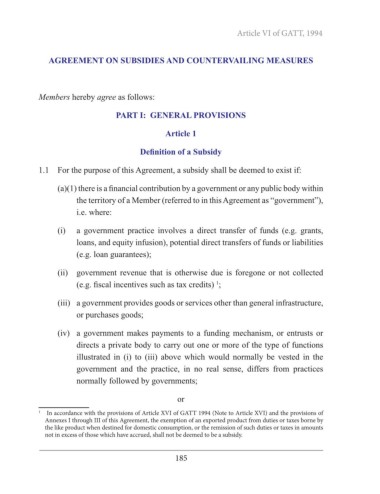 1 In accordance with the provisions of Article XVI of GATT 1994 (Note to Article XVI) and the provisions of