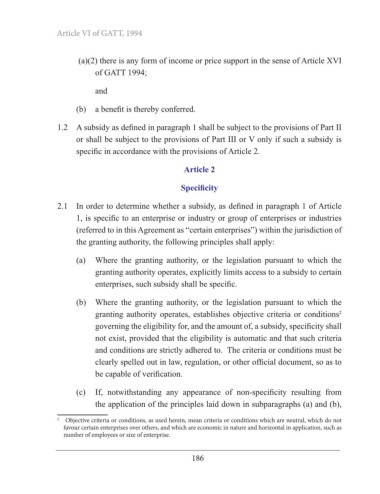 1.2 A subsidy as defined in paragraph 1 shall be subject to the provisions of Part II