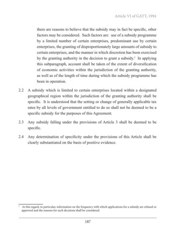specific subsidy for the purposes of this Agreement.