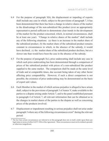 6.4 For the purpose of paragraph 3(b), the displacement or impeding of exports