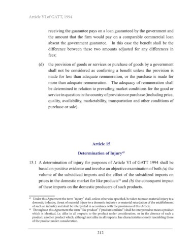 15.1 A determination of injury for purposes of Article VI of GATT 1994 shall be