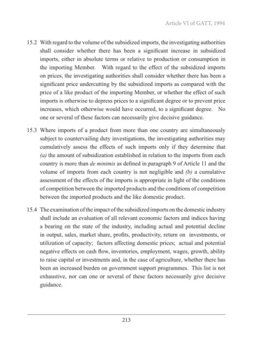 15.4 The examination of the impact of the subsidized imports on the domestic industry