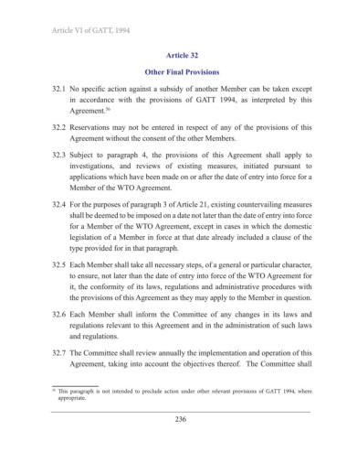 32.1 No specific action against a subsidy of another Member can be taken except