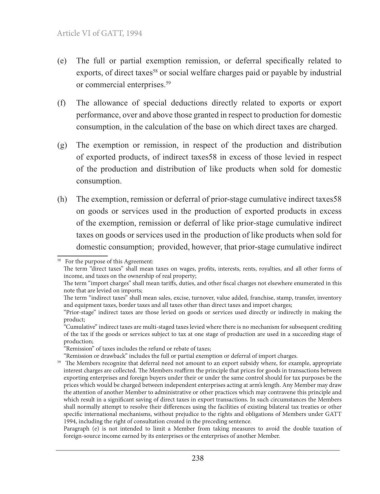 of exported products, of indirect taxes58 in excess of those levied in respect