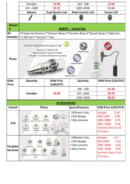 Items# Photo Specs/Features EXW Price (CAD/PCS)